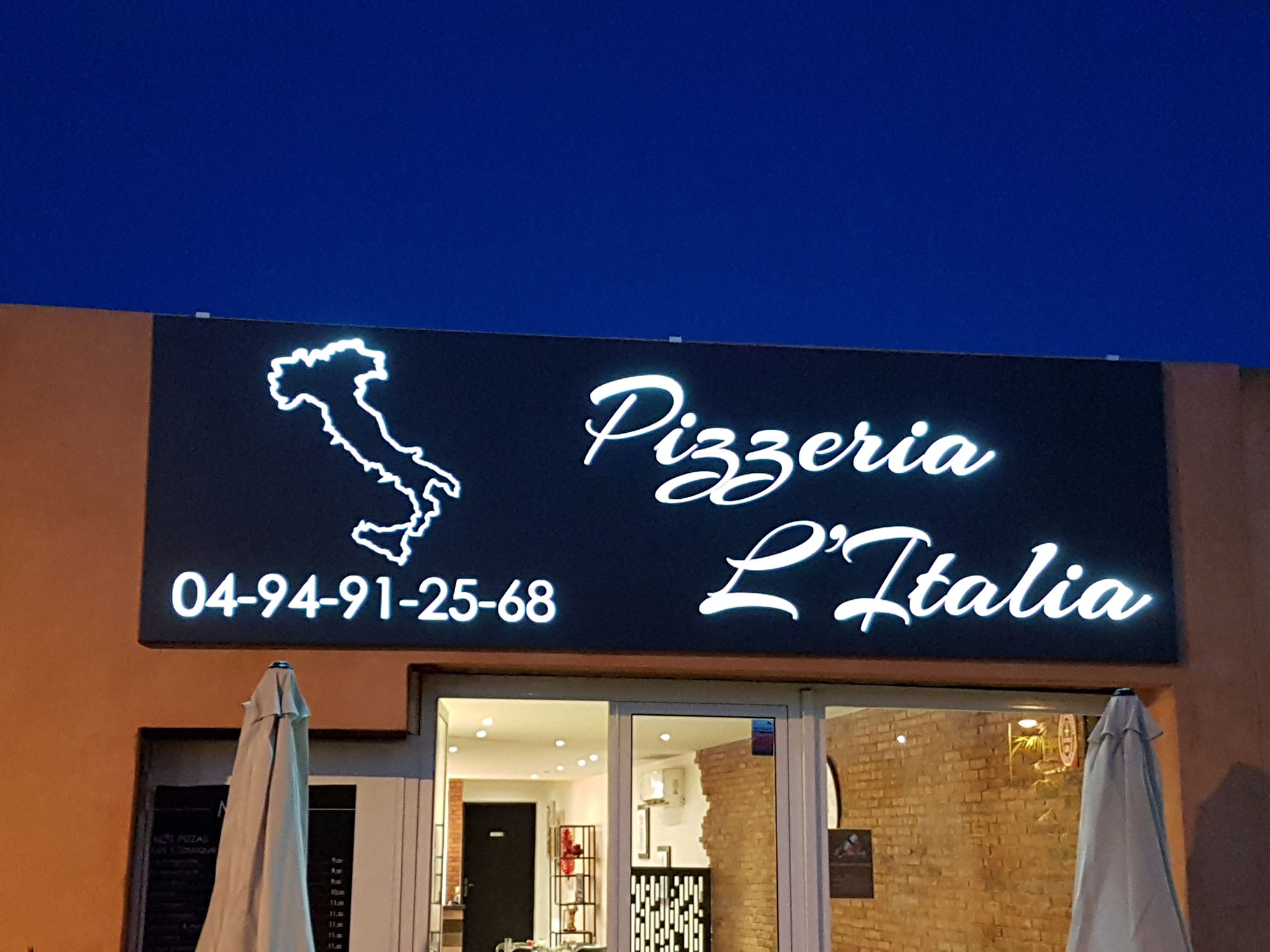 Enseigne avec bandeaux LED , tôle découpée au laser et peinture époxy