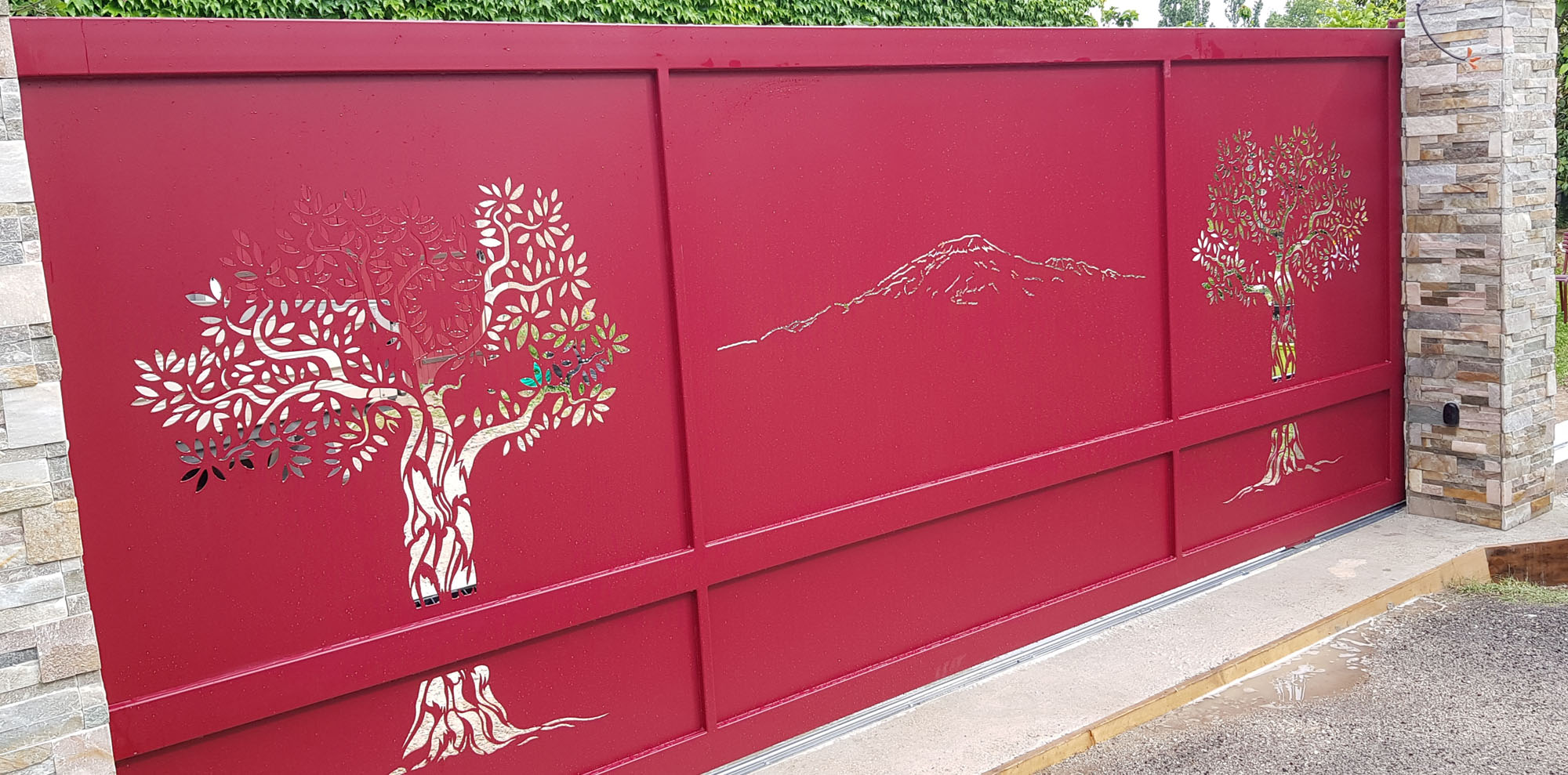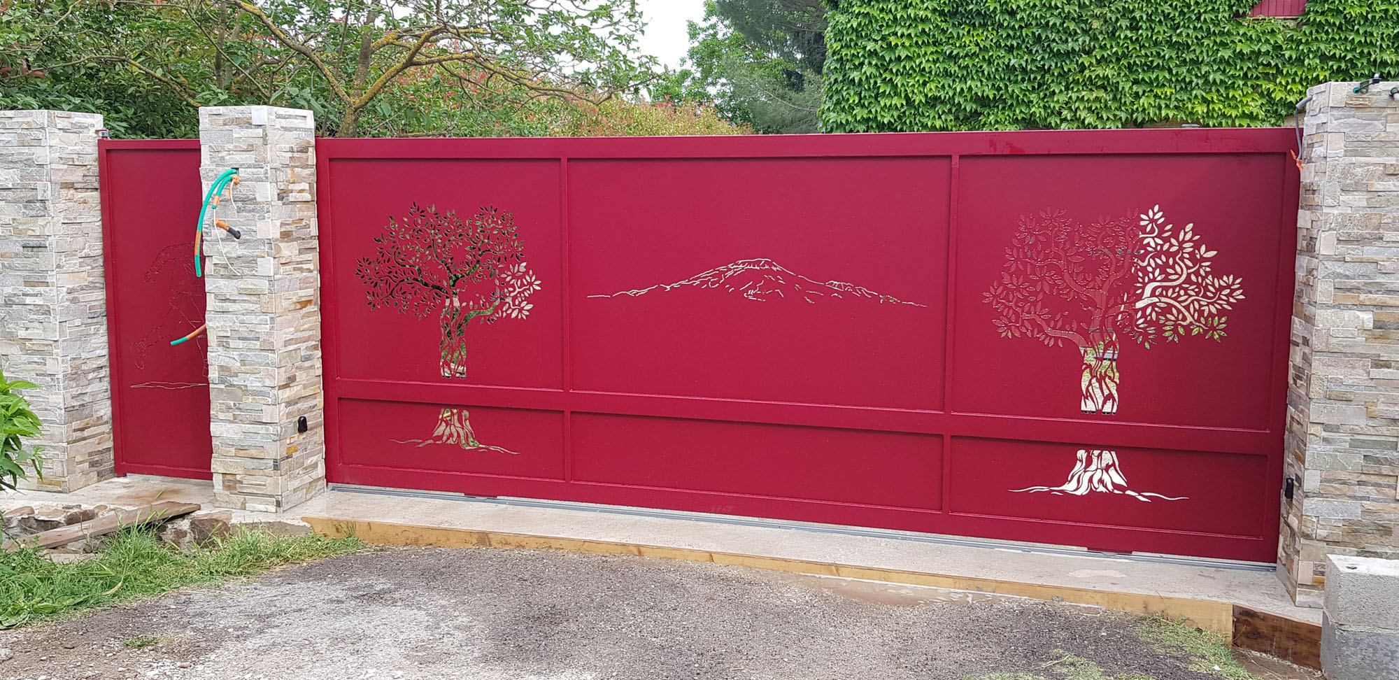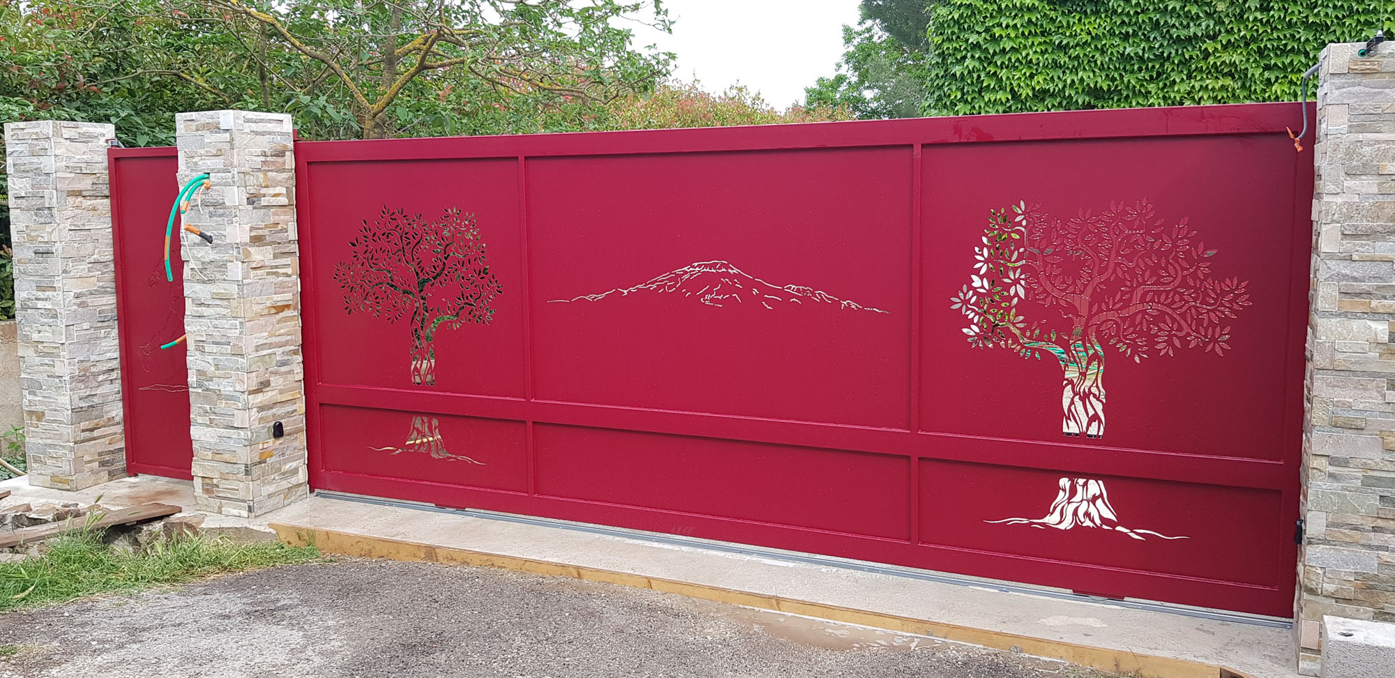 Portail coulissant de 4 métres 600 et hauteur 1 métre 800 , motorisé automatisme 600 kg , sablage et peinture époxy rouge basque