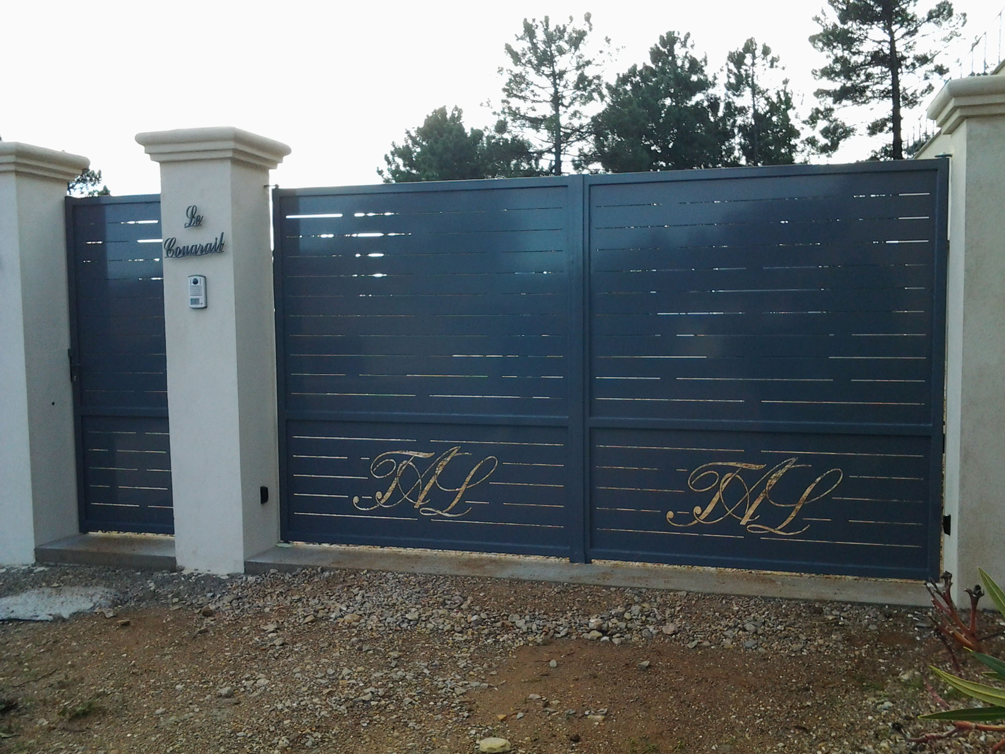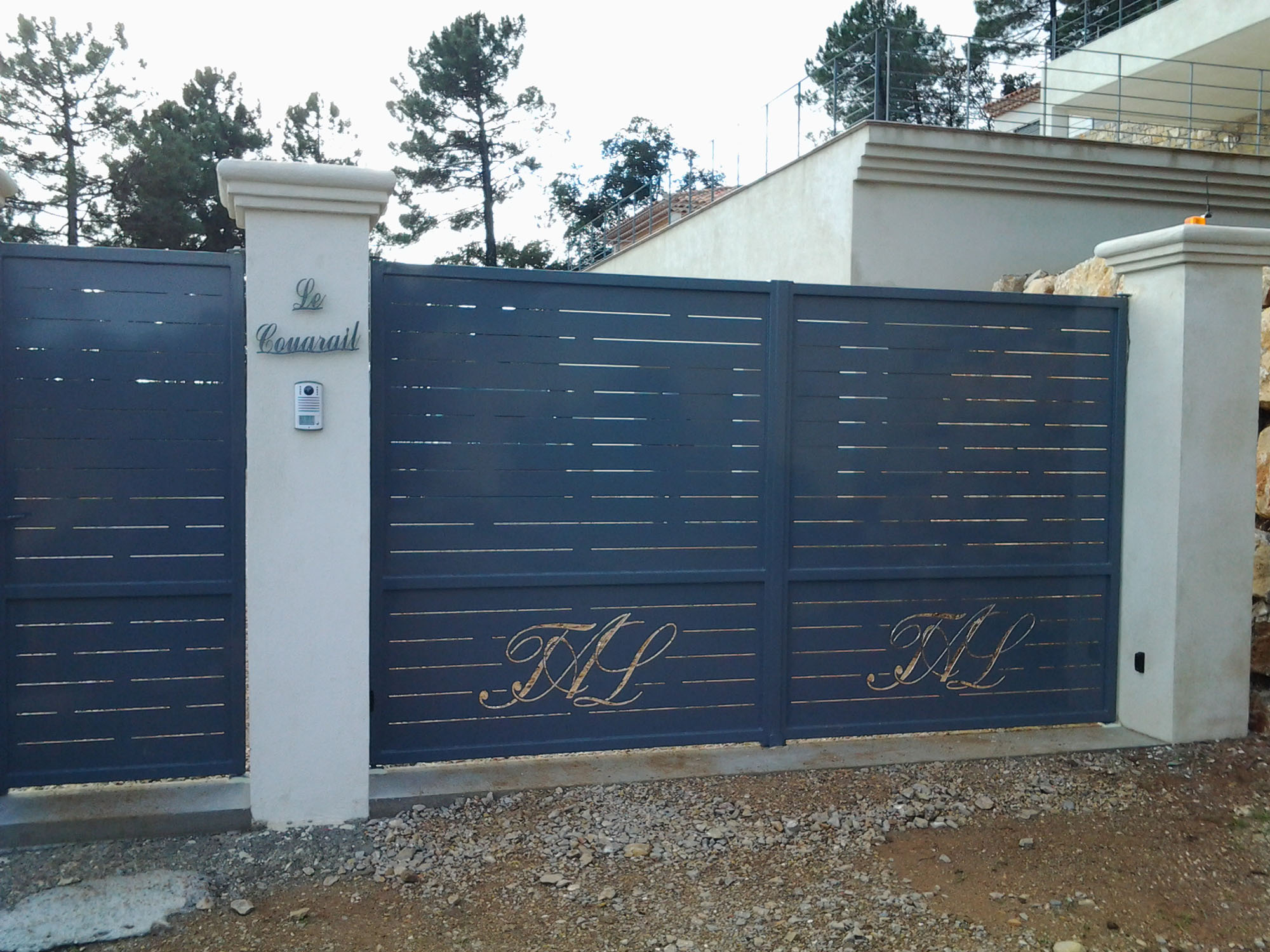 Portail et portillon découpe au laser personnalisée , peinture thermolaquée et automatisme