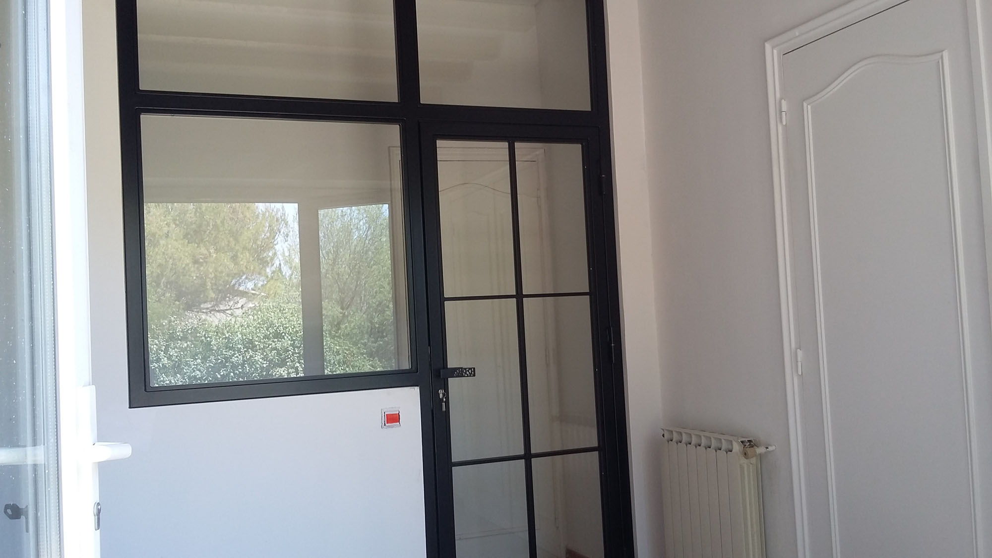 Verrière de bureau en acier , verre 44/2 et peinture époxy